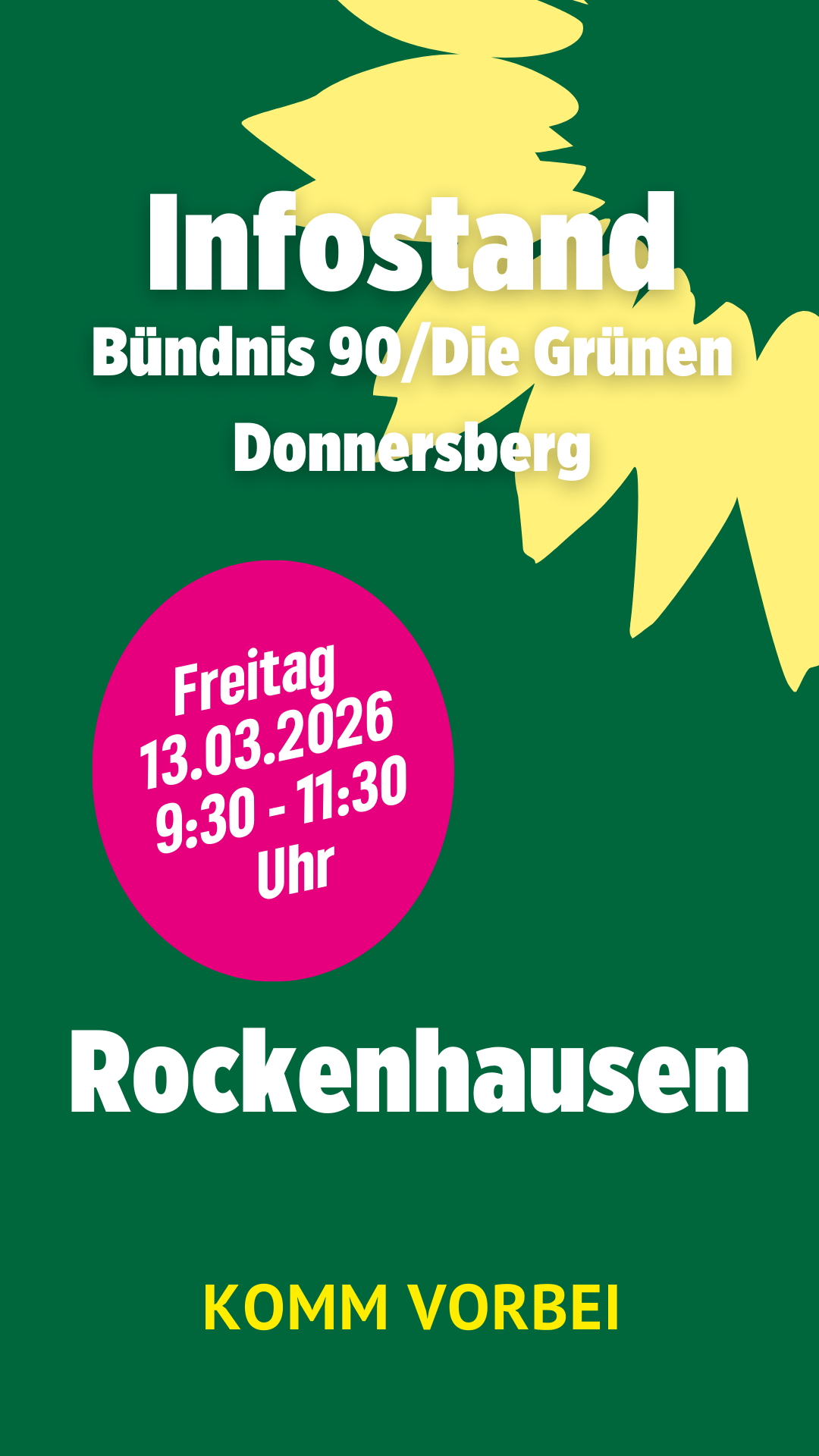 Wahlkampfstand Rockenhausen Kommt vorbei! Freitag13.03.202609:30 – 11:30 UhrRockenhausenDownload als ics-Datei